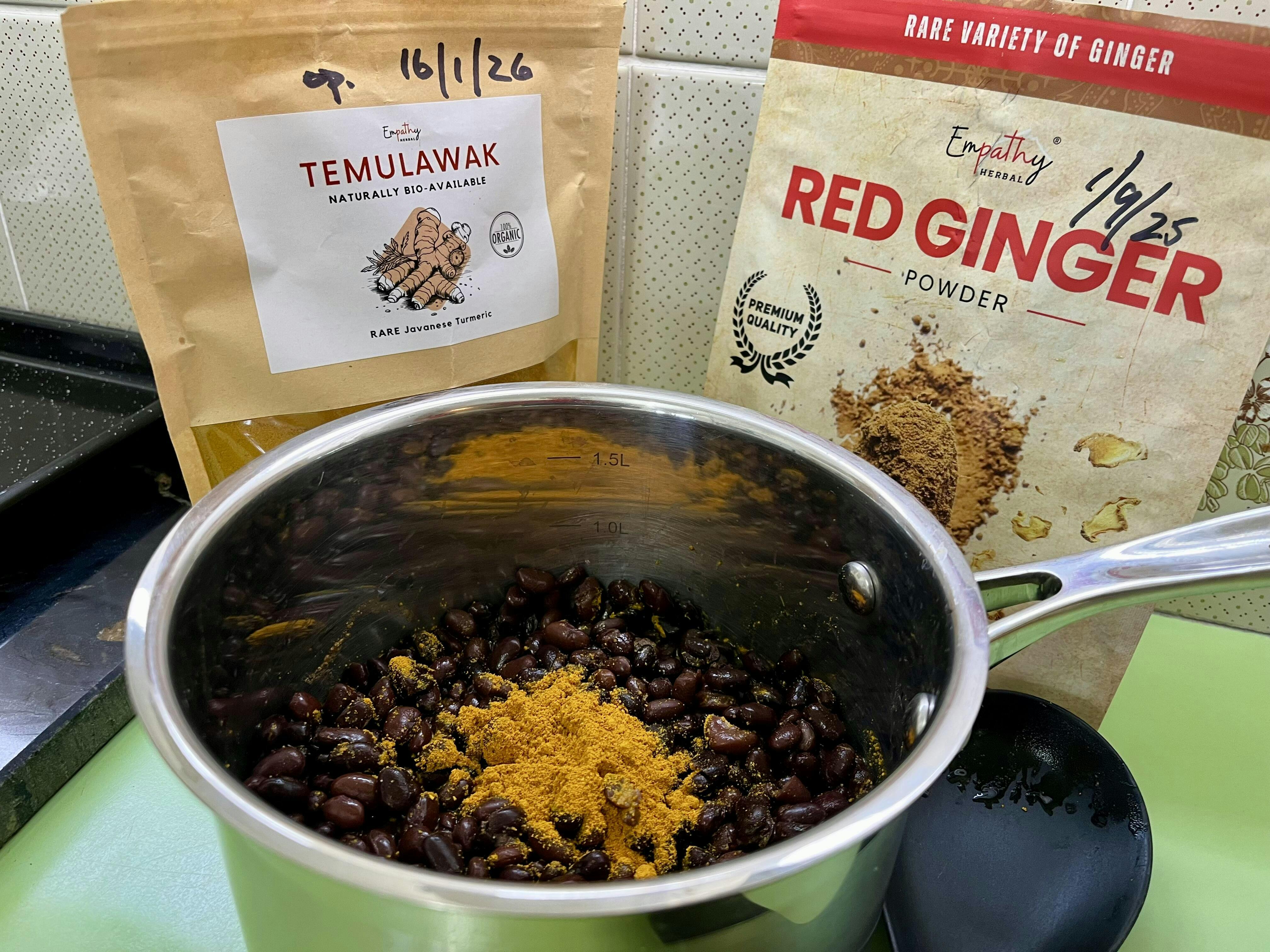 a staple for every day, loving the aroma and strong sweetish taste, vividly colourful promises lots; easy mixer in my daily protein smoothie (pure water based); Temulawak melds with Red Ginger too - both perfect pre reheat seasoning of strained black beans;
